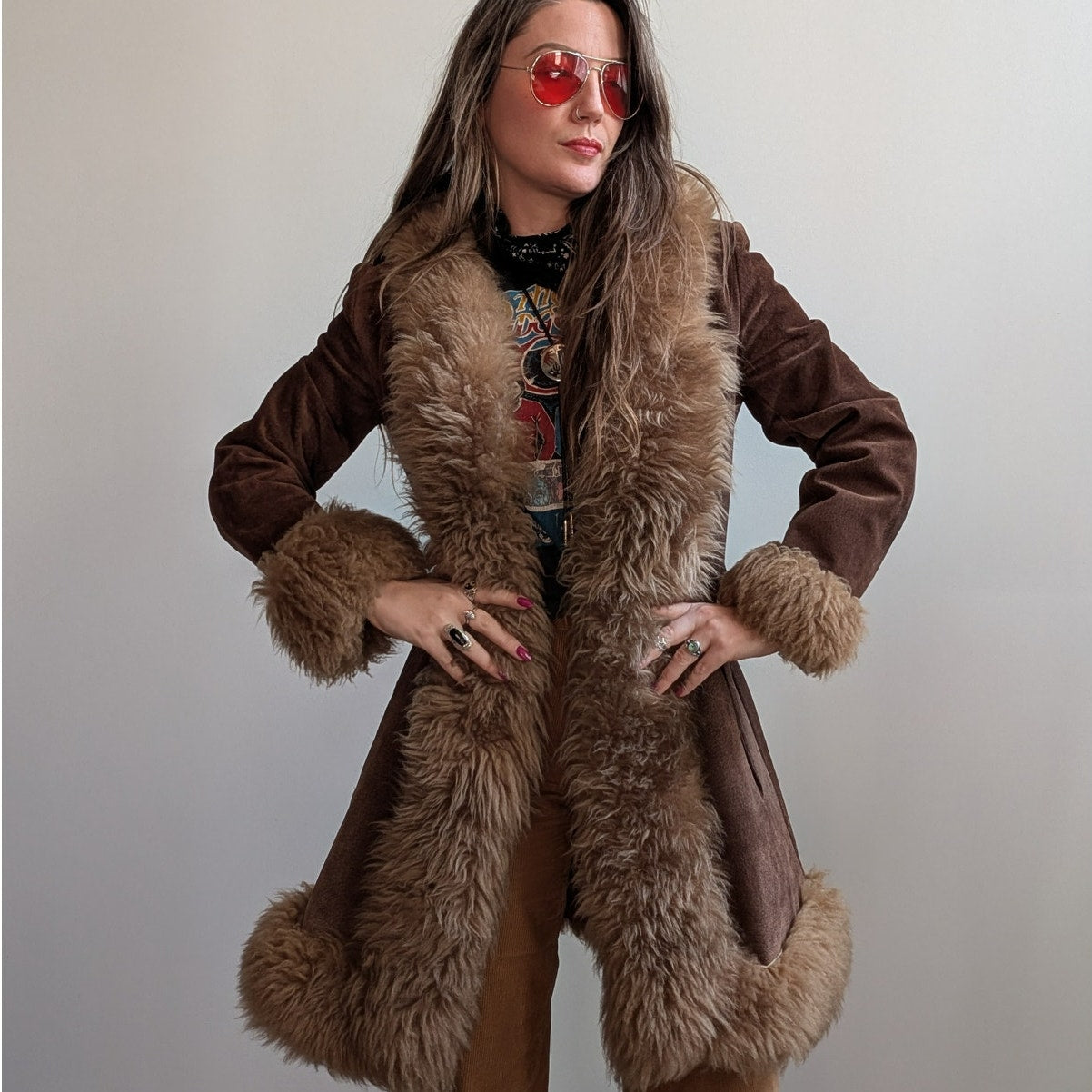 C122.389-3.10.7 fur coat boho chic festival hippie rock star girlfriend indie daisy jones phoebe goth grunge baddie classic fuzzy 60s dark romance #vintage #bohemian #suede #leather #70s