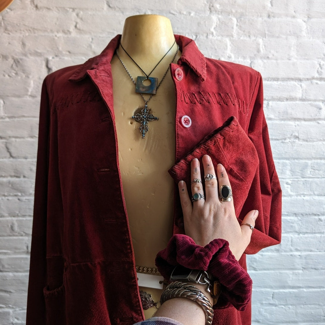 Vintage Cherry Red Suede Leather Jacket Western Minimalist Earthy Biker Coat