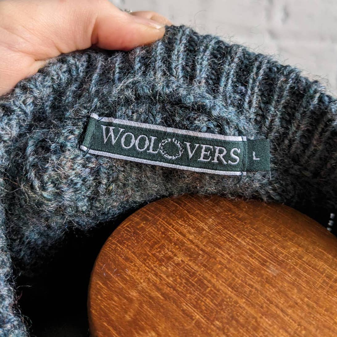 Rad little vintage chunky knit wool boxy grandpa sweater in earthy muted grunge blue green. Super cozy and classic. Gorgeous Coogi style thick cable knit design. Classic dark academia minimalism does woodsy fairycore vibes. Crewneck, ribbed cuffs and hem. Fuzzed out look and feel. Beautiful high quality mid-weight 100% wool. Gently used, in excellent vintage condition.
