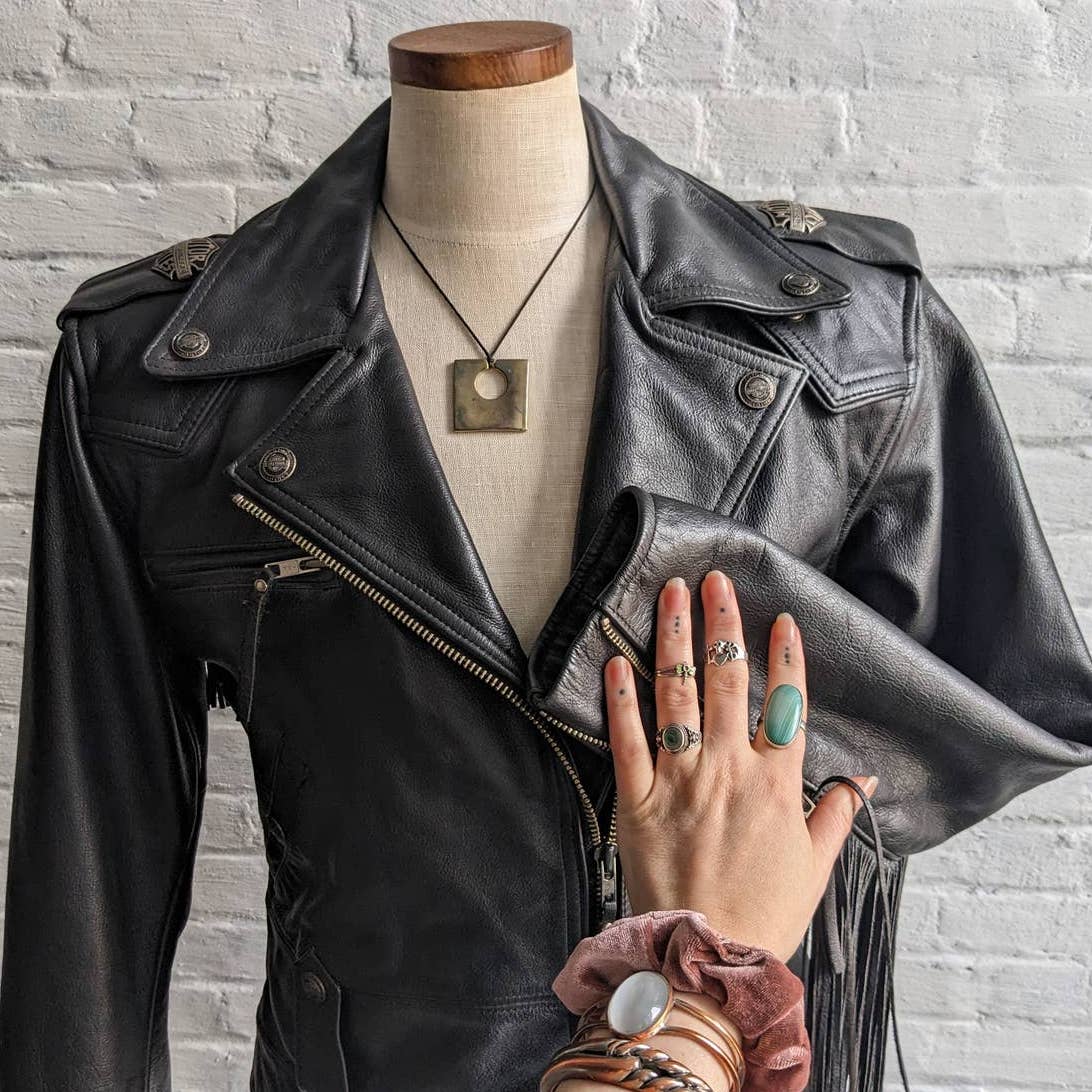 C62-187-5|3.7 90s goth motorcycle punk grunge baddie trendy aesthetic babe authentic #harley #moto #leather #fringe #biker