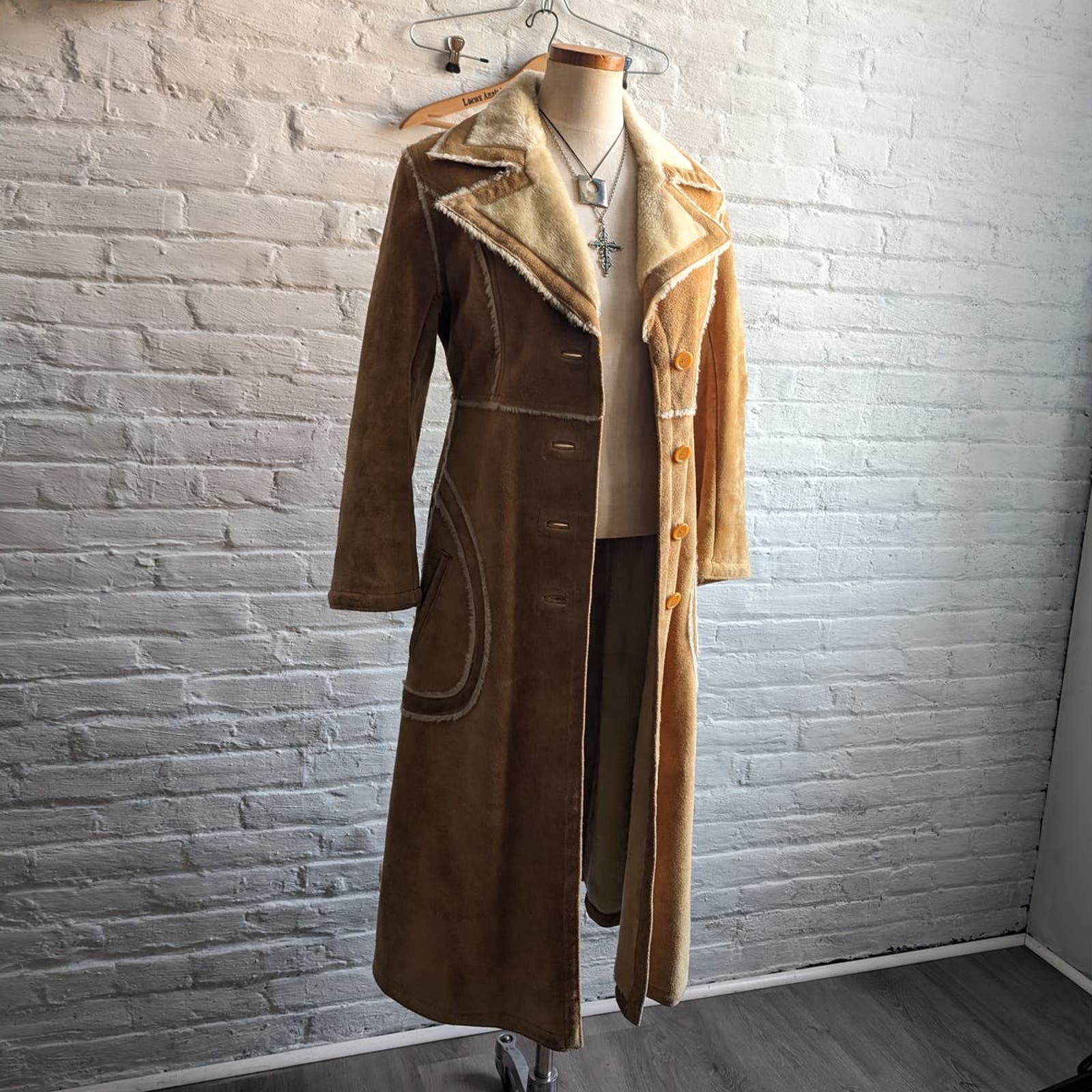 Vintage Genuine Suede Leather Penny Lane Duster Groovy Furry Trench Coat Jacket