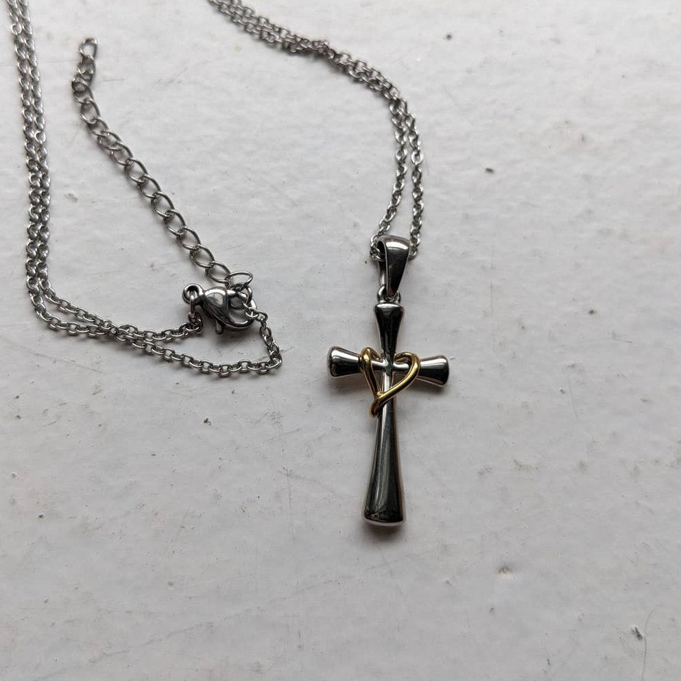 Y2K bling accessories bundle! Witchy grunge fairy does 70s boho chic vibes. Included are four (4) gorgeous detailed cross necklaces shown. Perfect for resellers or collectors in need of the perfect accessory for every look. Bling diamond silver tone, classic vibrant yellow gold tone with silver etching, silver tone Guess brand etched with mini bling, silver tone spiritual cross with gold heart. Gently used, in excellent condition.