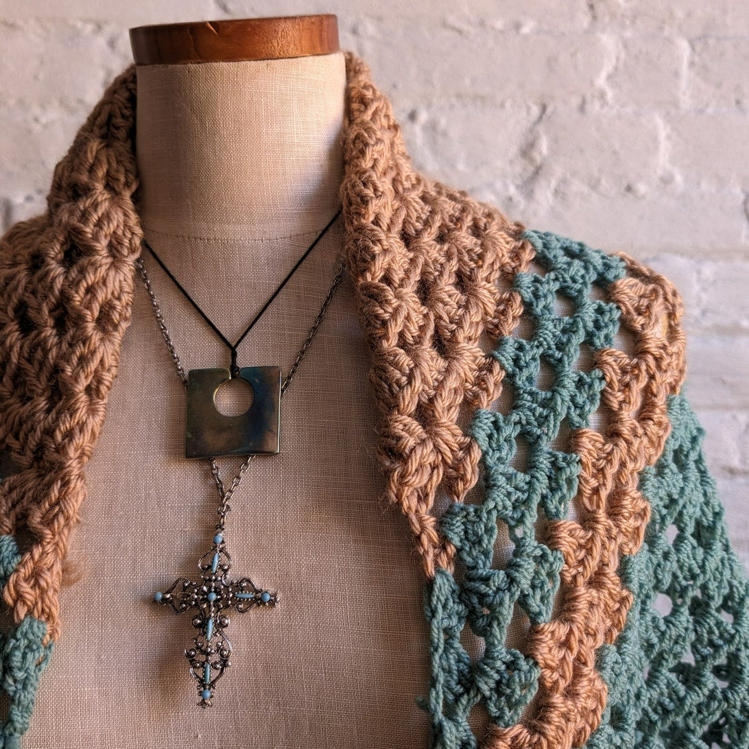Vintage Hand Knit Crochet Festival Wrap Boho Hippie Western Earthy Poncho Shawl