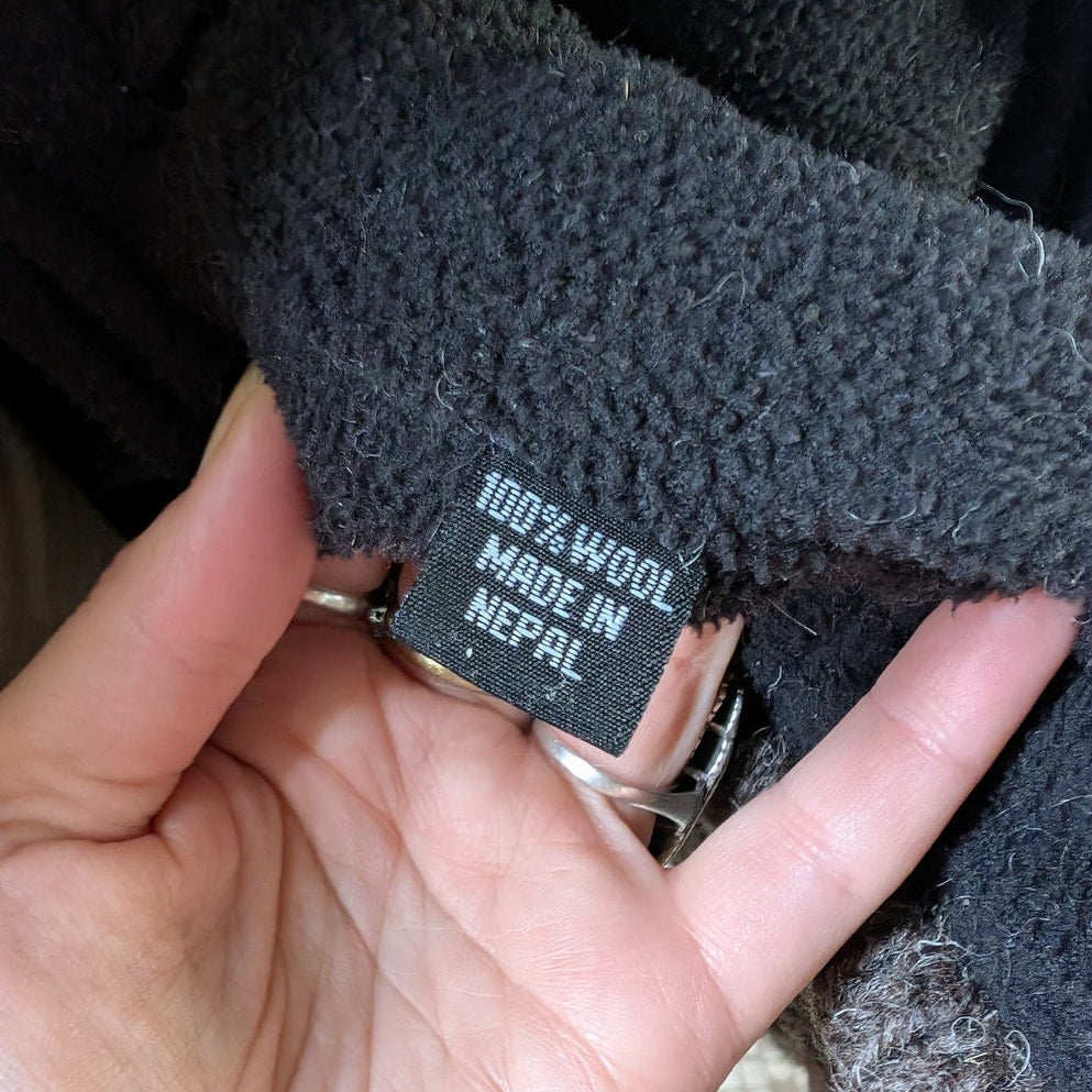Vintage Hand Knit Wool Fleece Jacket Fuzzy Chunky Grandpa Sweater Nordic Coat