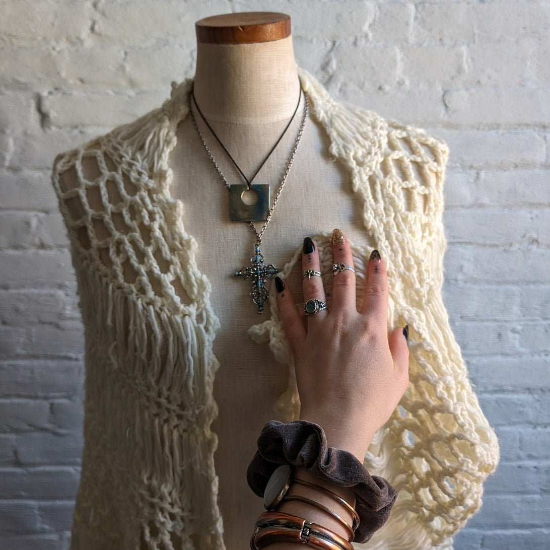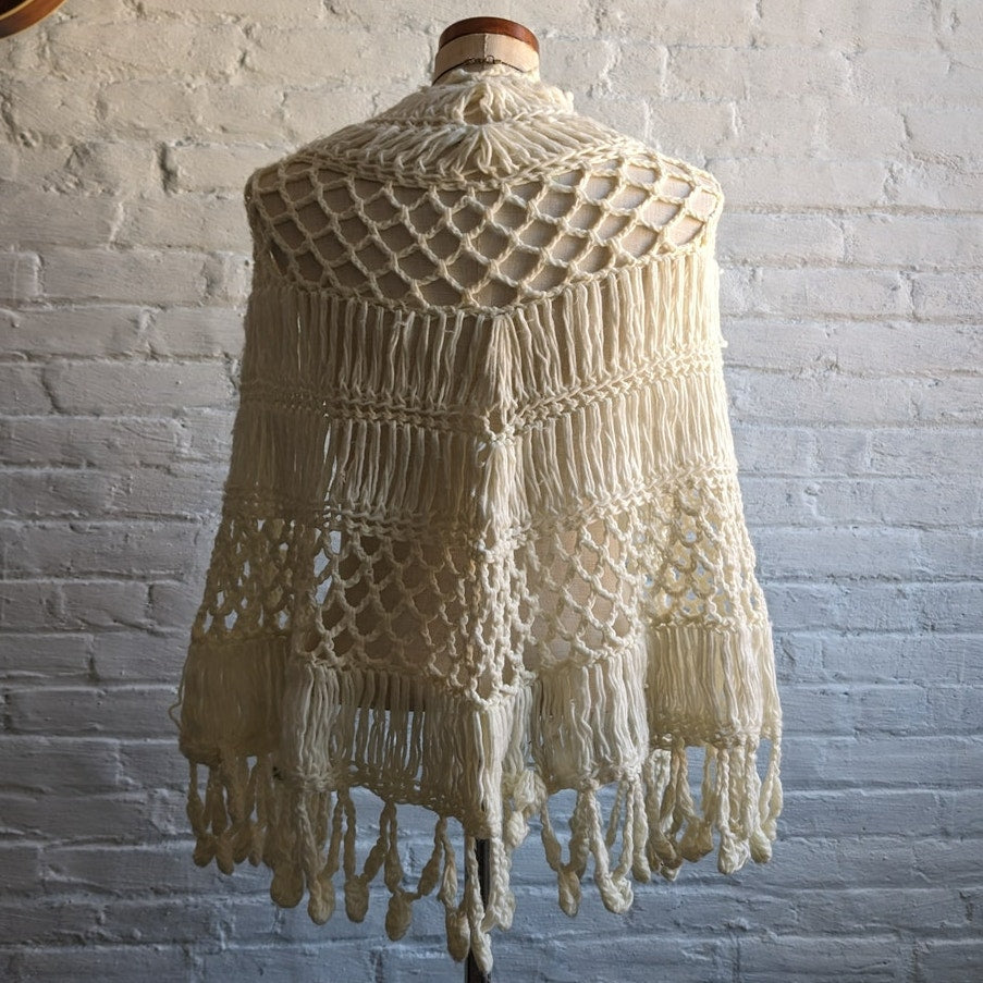 Vintage Japanese Hand Crochet Wrap Fringe Minimalist Festival Boho Sweater Shawl