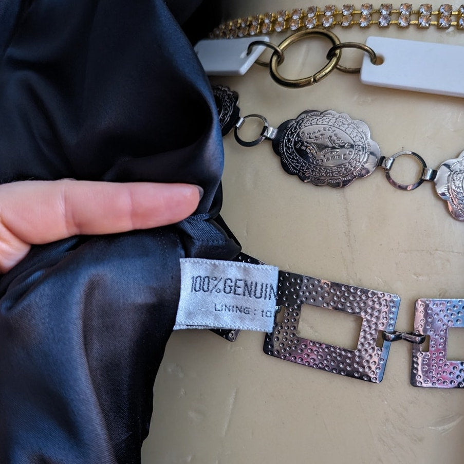 So chic! Super sexy vintage genuine leather trench in jet black. 90s grunge goth girl does biker babe rock star girlfriend vibes. Buttery soft perfectly broken in leather. Slightly tapered batwing dolman sleeves, button front closure, major shoulder pads. Roomy pockets, fully lined, longline oversize silhouette. Midweight, perfect for cozy layers. Minor scuffs and marks consistent with age. Gently used, in very good vintage condition.
