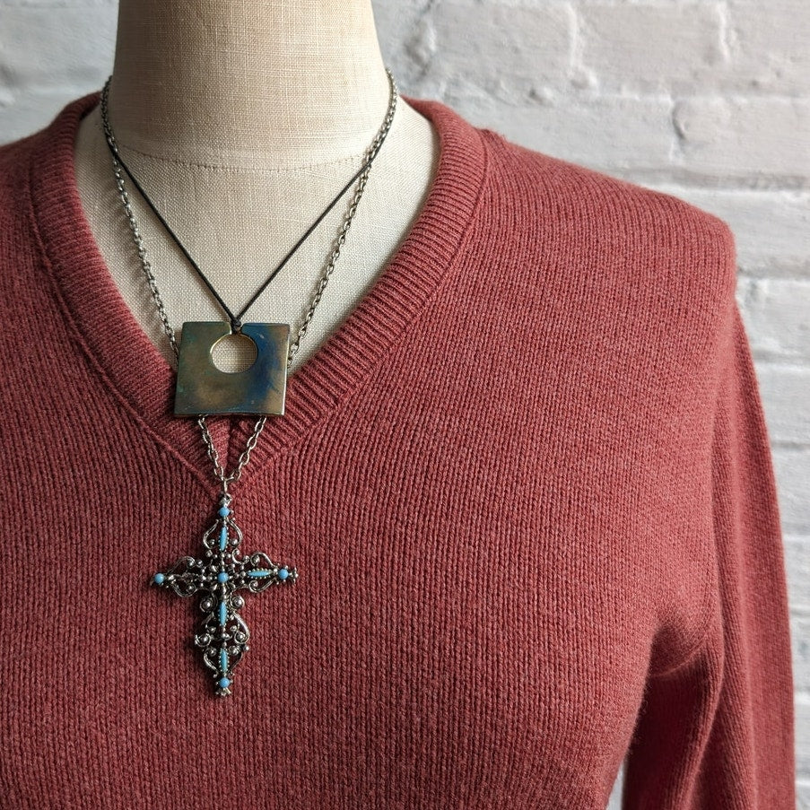Loving this super cute neutral closet staple! Super soft knit v neck sweater in that perfect muted rusty pink. Preppy boho chic does earthy granola girl vibes. Slouchy comfy fit. Ribbed details with good stretch, nice light to mid-weight feel. Perfect for layers. Gently used, in excellent vintage condition.