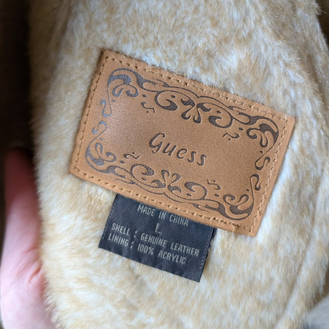 Love this one! Gorgeous western velvety soft suede mini trench in cool sandy beige desert neutral tones. 70s minimalist cowgirl does dreamy boho chic vibes. Sexy dagger collar, beautiful woven leather stitching and patchwork paneling. Shaggy muted auburn faux fur lining is super soft. Button front closure, pockets. Mid-weight, perfect for layers. Minor scuffing and creasing consistent with age. Gently used, in good vintage condition.