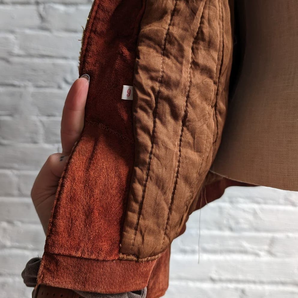 Looove!! Major 70s groovy cowgirl does almost famous vibes! Insanely gorgeous true vintage genuine suede penny lane mini trench with sexy thick shaggy shearling collar. Baby soft suede in deep rusty orange red brown, silky full thermal lining. Belted closure, single pocket, gorgeous western details. Mid-weight, high quality. Minor scuffs consistent with age. Gently used, in excellent vintage condition.