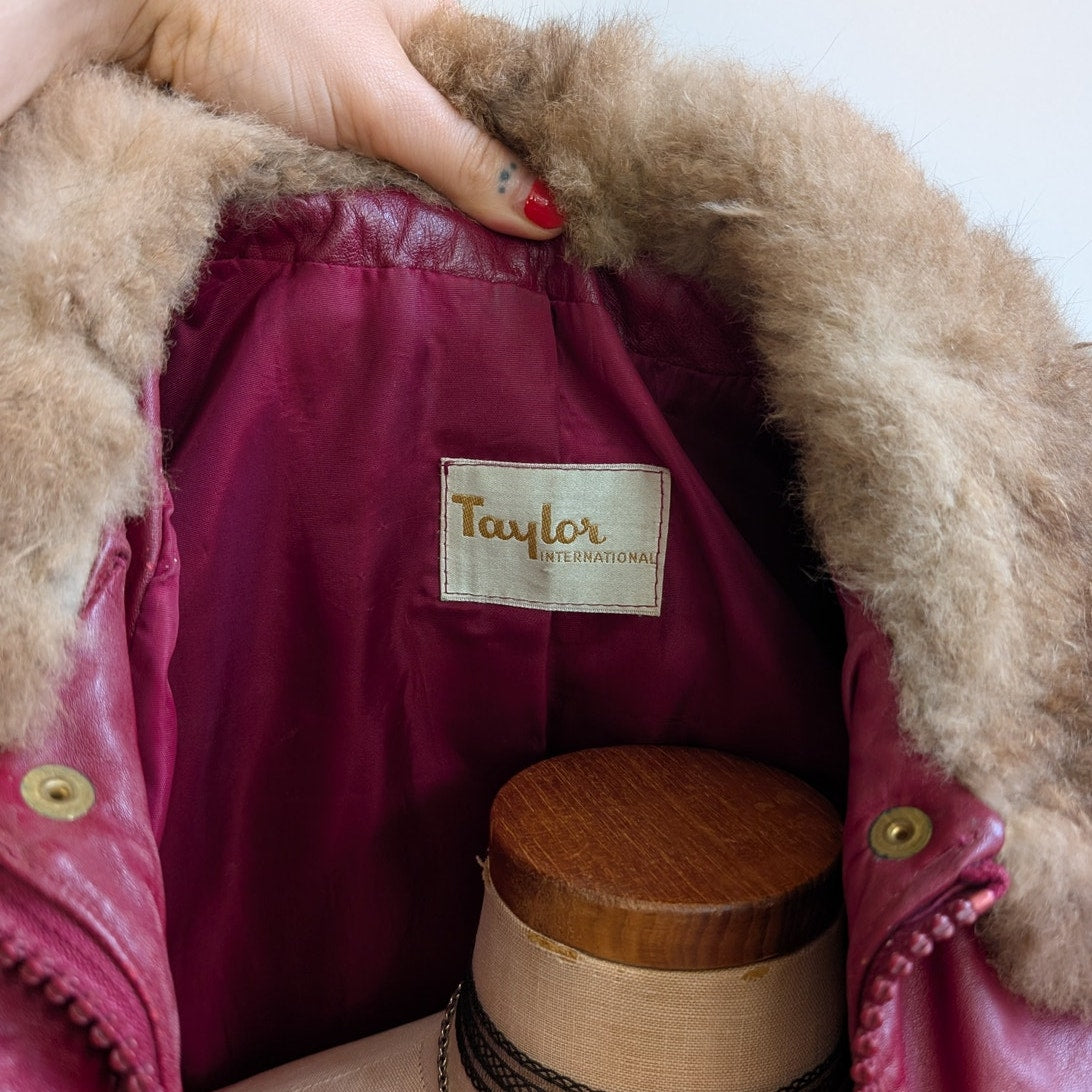 Vintage Red Leather Jacket Penny Lane Fur Trim Coat Grunge Boho Bomber Medium