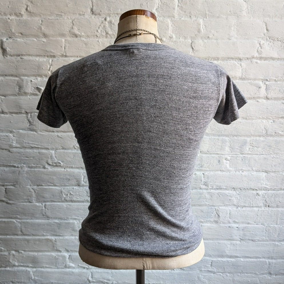 70s Vintage Heathered Grey Playboy Bunny Graphic Tee Logo Velvet T-Shirt Top