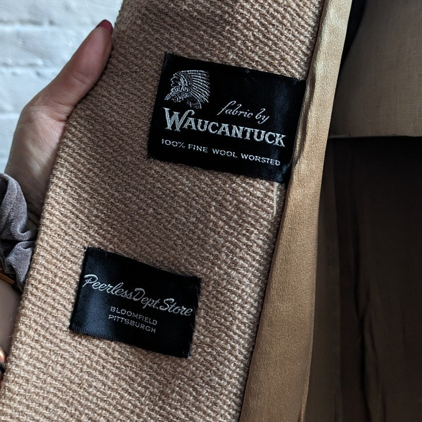 Vintage Wool Mink Fur Tan Coat Camel Swing Boucle Furry Collar Mod Chic Jacket