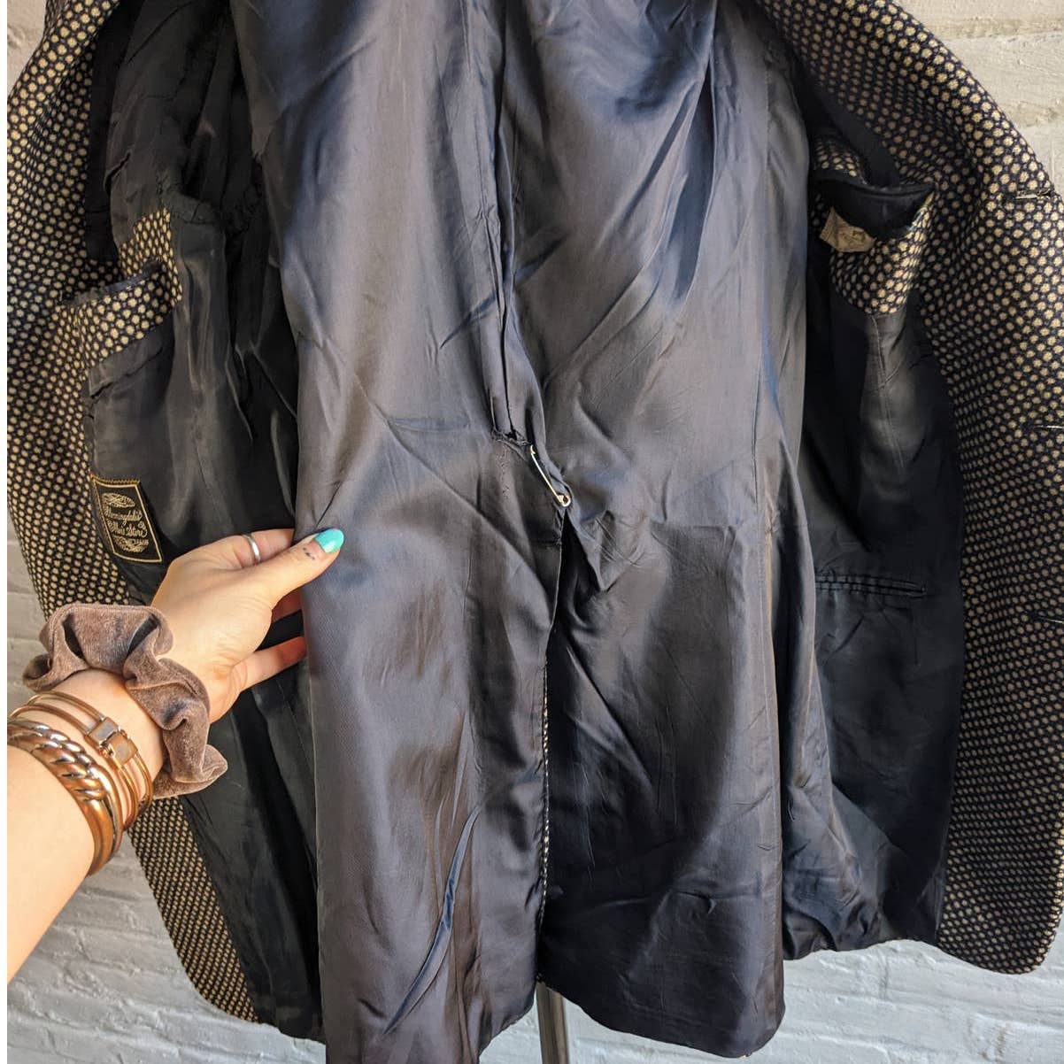 Vintage Wool Polkadot Tapestry Blazer Grunge Academia Grandpa Trench Coat Jacket
