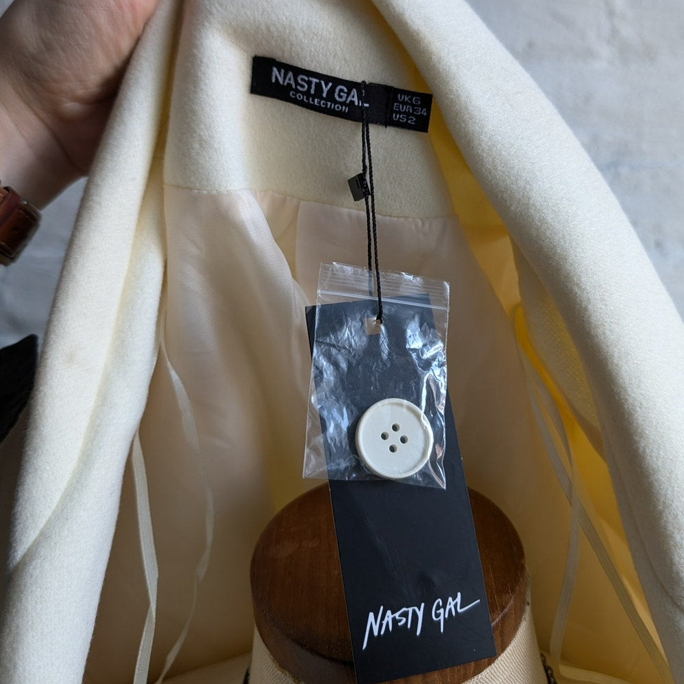 NWT! Retails $210+! Love this classic closet staple! The perfect tailored blazer that's super soft and cozy. 90s minimalist clean girl does light academia preppy vibes. Neutral cream off white in lightly fuzzy textured poly knit that mimics wool look. Elegant notched collar, single button closure, dual front pockets. Light shoulder pads, longline oversize silhouette, fully lined. Light to mid-weight, perfect for layers. New with tags