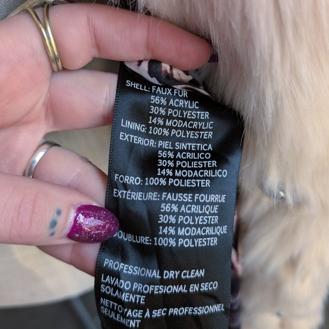 Hello gorgeous!! Obsesssssed with this perfectly sexy shaggy retro Y2K faux fur trench coat! Major rock n roll girlfriend grunge glam does 70s almost famous old money chic vibes. Natural earthy cream off white tone. Super fuzzy plush baby soft fluffy vegan fur looks like the real thing! Silky floral accent lining, snap closures, pockets! Longline silhouette. Mid-weight, perfect for layers. Gently worn, in excellent condition.