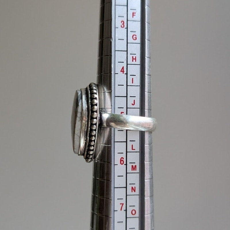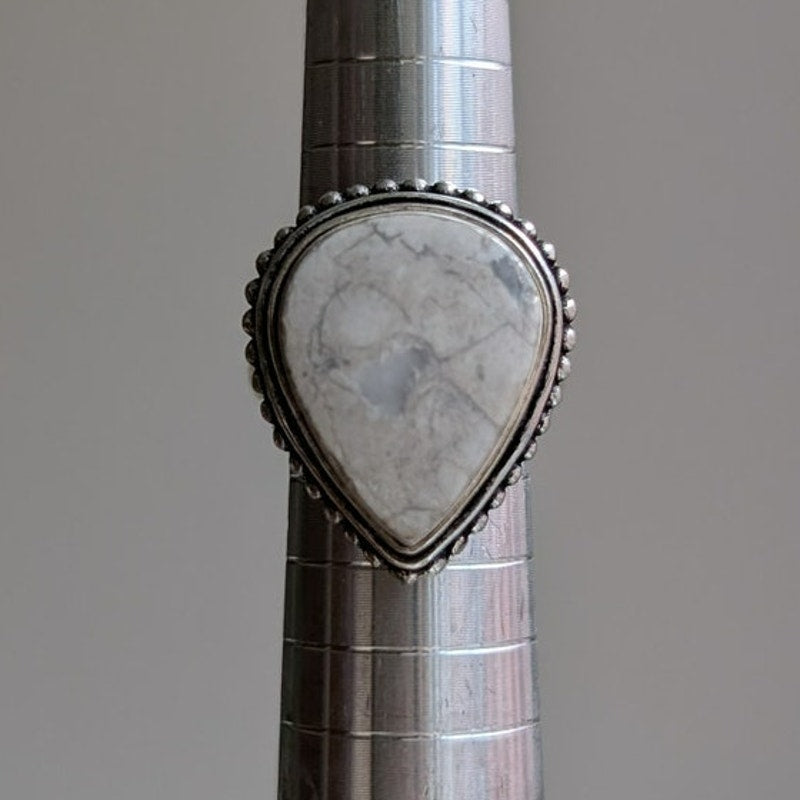 White Teardrop Sterling Silver Ring Retro Vintage Boho Natural Stone Size 5.25