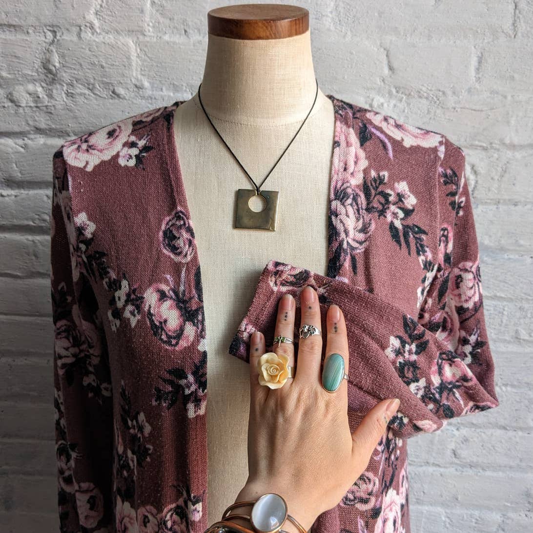 Y2K Dark Romance Floral Grunge Cardigan Longline Muted Dusty Rose Pink Sweater