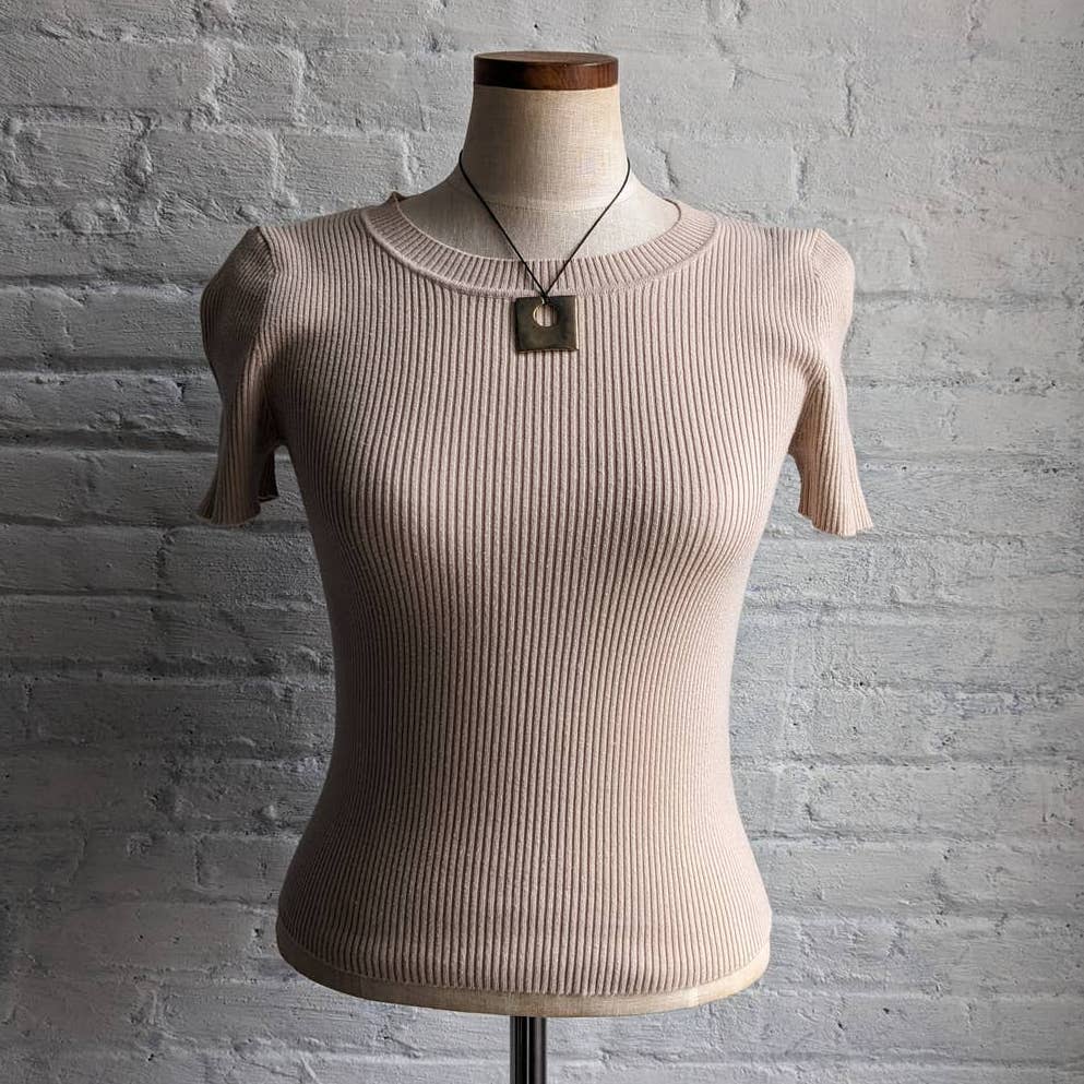 Y2K Minimalist Classic Neutral Ribbed Top Bodycon Babydoll Earth Tone Shirt