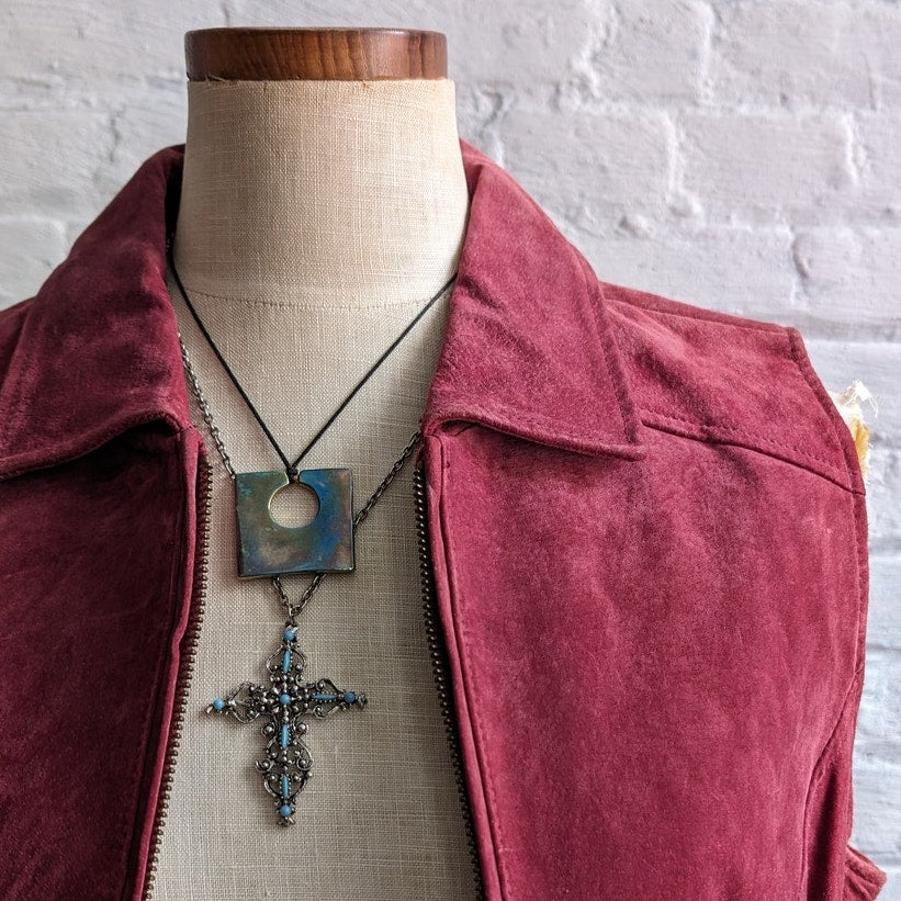 Totally loving this classic! Super soft genuine suede leather vest in brick red. 90s moto grunge aesthetic does Y2K boho biker babe. Suede is smooth and supple with full silky soft lining. Collared neckline, zipper front closure, front pockets. Longline silhouette for extra coverage. Light to mid weight, perfect for spring layers. Gently used, in good vintage condition.