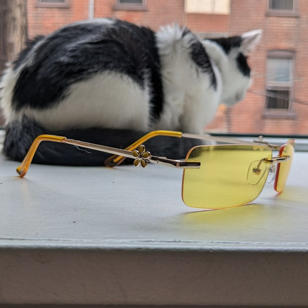 Y2K Retro 70s Yellow Daisy Festival Sunglasses Floral Groovy Gold Sunnies Shades
