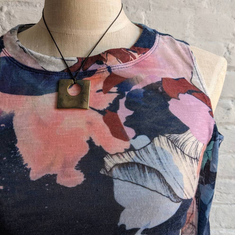 Super soft lightweight knit with mesh burnout feel and all over abstract floral tattoo art style print. Shades of fuzzed out muted cornflower blue, dusty rose and maroon on deep navy. Super cute cold shoulder cutouts for a sexy subtle peek of skin. Gently used, in excellent condition.