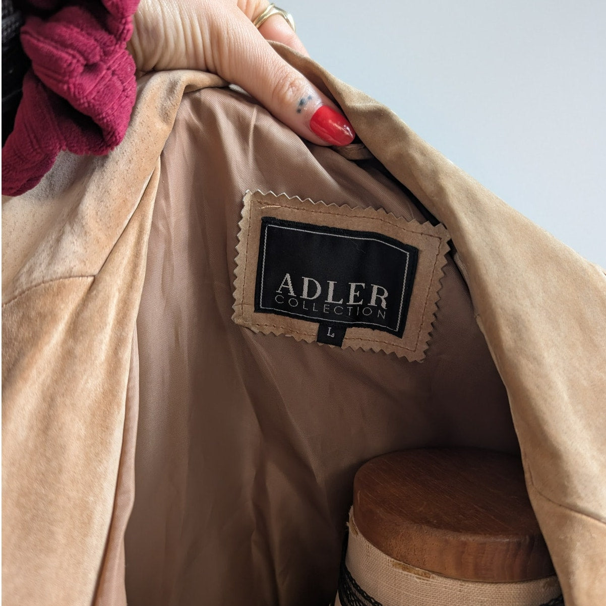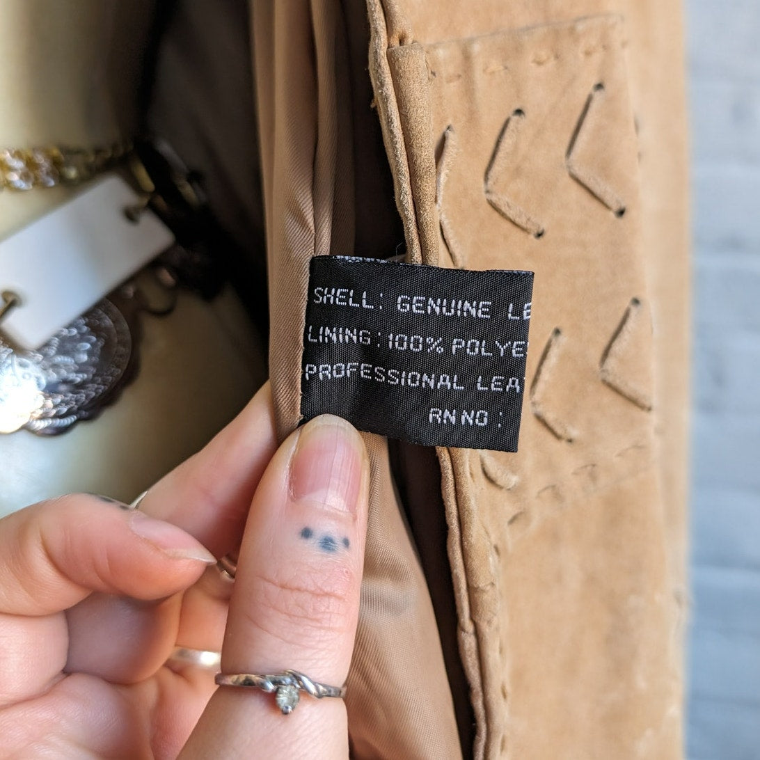 Y2K Tan Leather Trench Coat Neutral Suede Jacket Penny Lane Western Boho Large