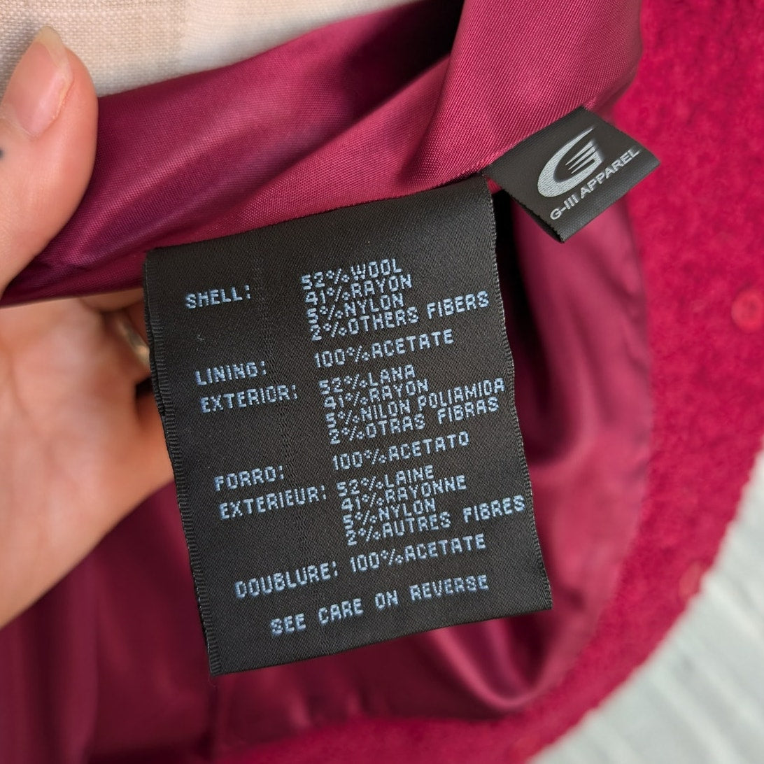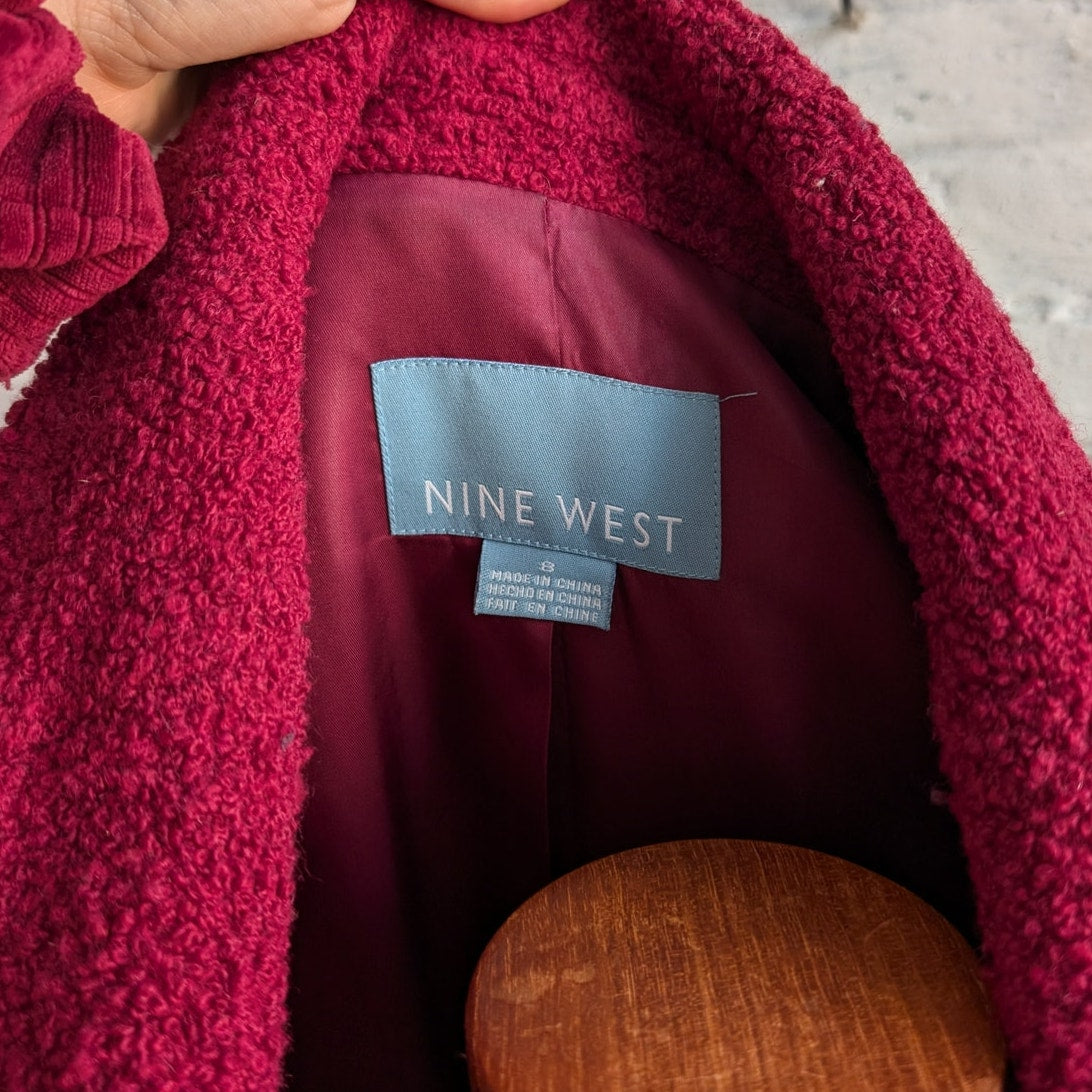 Y2K Vintage Red Trench Coat Boucle Knit Jacket Maroon Pink Wool Jacket Medium